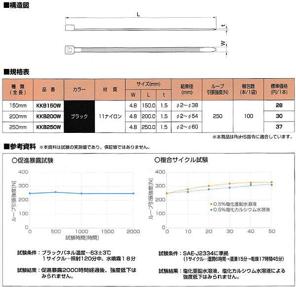 | 結束バンド用ベース:耐劣化性、耐久 性、接着力抜群 | ||||||