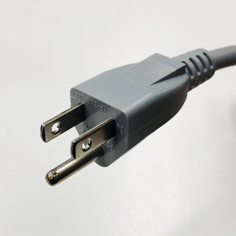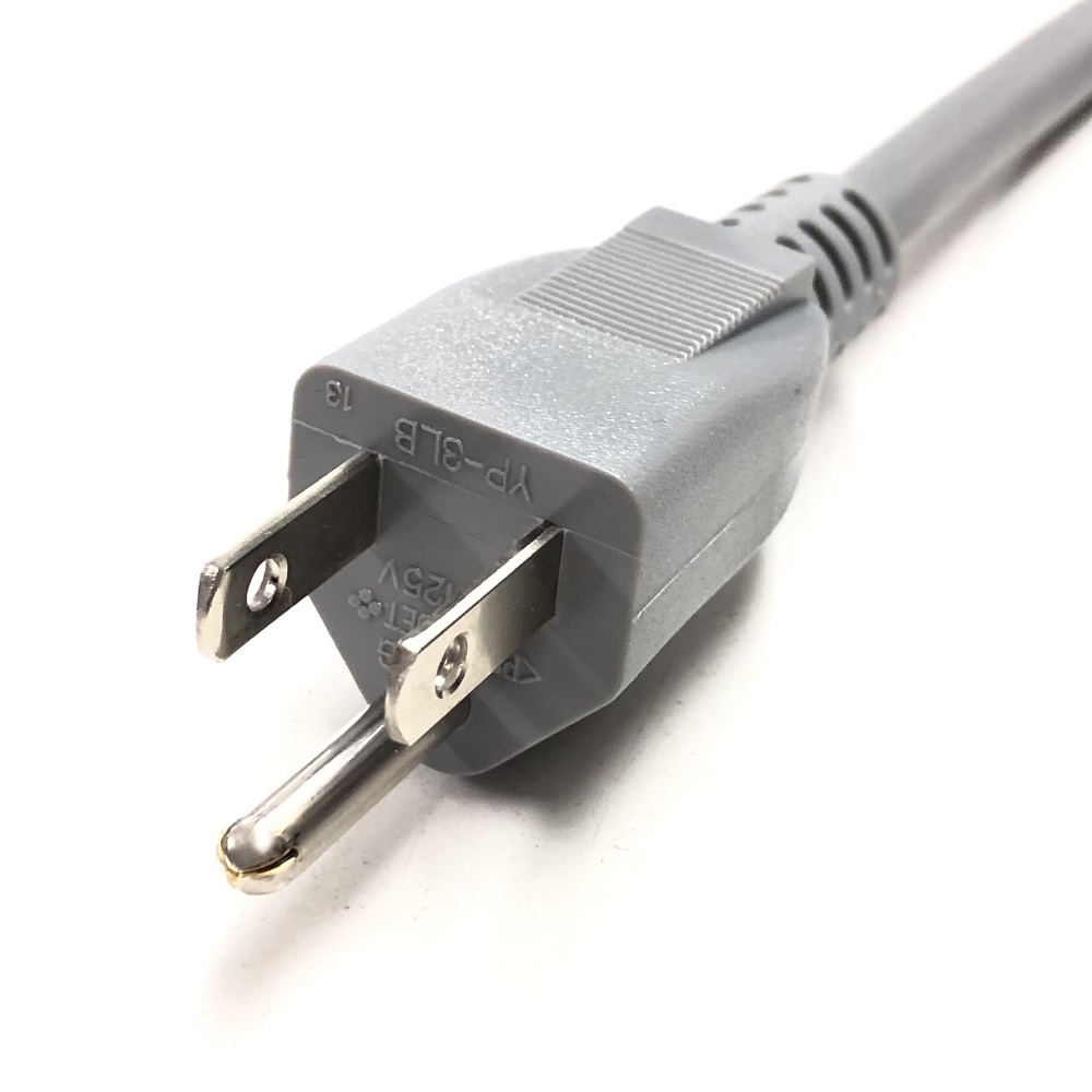VCTF接地P付 (ビニール丸型コード) シース色 灰(コア色:黒、白、赤) ※耐トラッキング対策に有効な中子タイプのプラグ(熱硬化性樹脂入り 2重成形プラグ)。 |